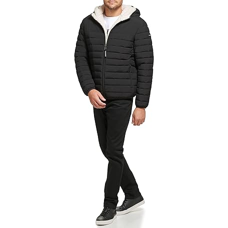 Calvin Klein Men's Hooded Down Jacket Quilted Coat Sherpa Lined