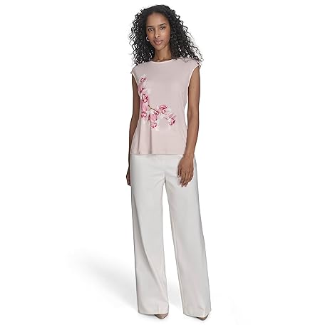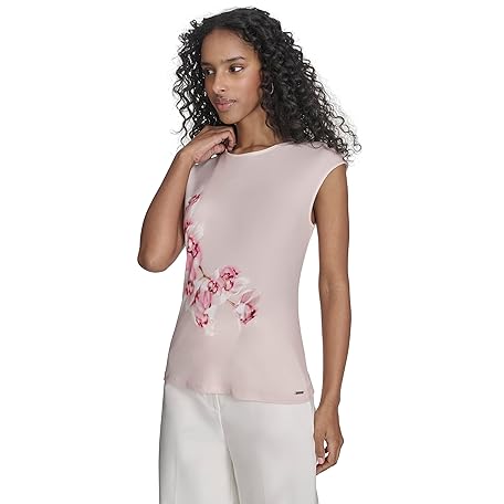 Calvin Klein Women's Cap Sleeve Crew Neck Printed Top Printed Cap Sleeve Crew Neck top