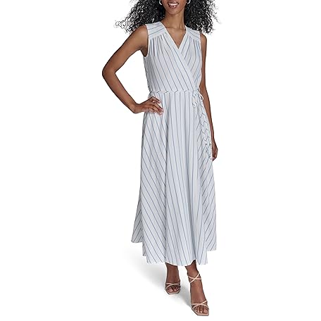 Calvin Klein Women's Gauze Casual Stripe Self Tie Dress
