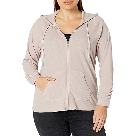 Calvin Klein Women's Ruched Long Sleeve Zip Front Hoodie Jacket, Evening Sand, XXL