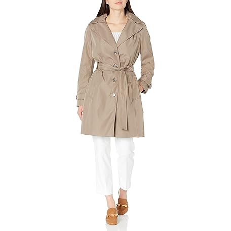 Calvin Klein Women's Single Breasted Belted Rain Jacket with Removable Hood Trench Coat