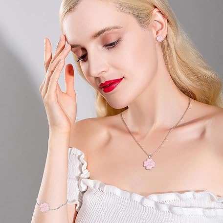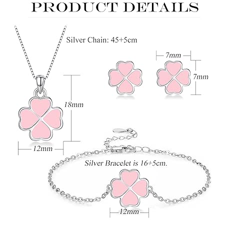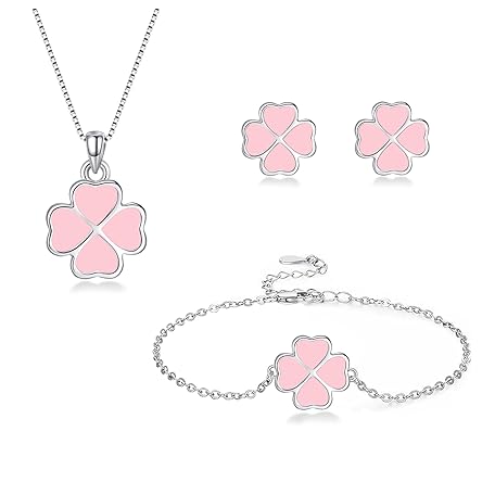 • Cangall 3PCS Silver Clover Jewelry Set,925 Sterling Silver Four Leaf Clover Jewelry Set, Lucky Love Shamrock Necklace, Bracelet & Earrings Set, Women’s Clover Jewelry Set for Birthday Christmas
