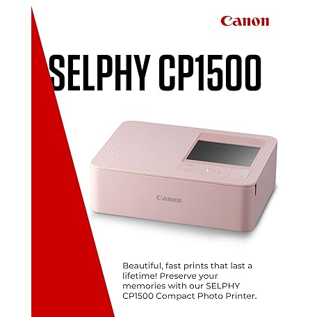 Thông tin sản phẩm Canon SELPHY CP1500 Compact Photo Printer + Ink & Paper Set (36 Sheets) – Wireless Printing, Long-Lasting Prints, USB-C & SD Card Connectivity – Ideal for Scrapbooks & Photo Albums, Pink