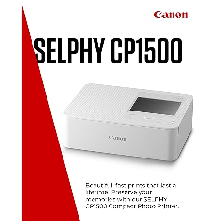 Thông tin sản phẩm Canon SELPHY CP1500 Compact Photo Printer + Ink & Paper Set (36 Sheets) – Wireless Printing, Long-Lasting Prints, USB-C & SD Card Connectivity – Ideal for Scrapbooks & Photo Albums, White