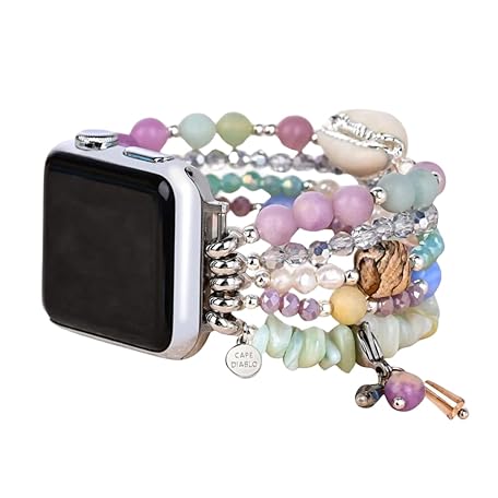 Cape Diablo Smart Watch Band for Women - Handmade Gemstone Strap - Compatible with 38mm-45mm Apple Faces (Small - 5.25-5.8 inches and stretchable, Seaside Dreams)