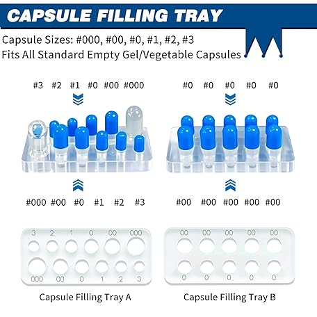 Sản phẩm Capsules Filling Machine Tray Kit - 12Pcs Herb Powder Tamper Capsule Holder Filler Maker Tool - Empty Gel Pill Lab Scoops Tiny Spatula Micro Spoon Funnel Pills Quick Fill Tools Size #000 00 0 1 2 3 đang được bán với giá ưu đãi là $25.506 tại nước Anh.
