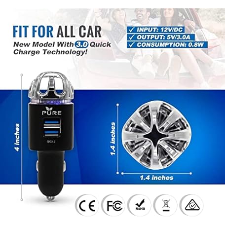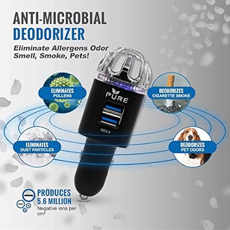 Thương hiệu Pure là cái tên nổi tiếng được rất nhiều khách hàng trên thế giới chọn lựa. Với kiểu dáng đẹp mắt, sang trọng, sản phẩm Car Air Purifier Premium Air Ionizer & Car Charger Accessory w Dual USB Ports Quick Charge 3.0 Eliminate Allergens Bad Odor Pet Smell Smoke Pollen Mold Bacteria Viruses PM2.5 & VOCs Deodorizer là sự lựa chọn hoàn hảo nếu bạn đang tìm mua một món cho riêng mình.
