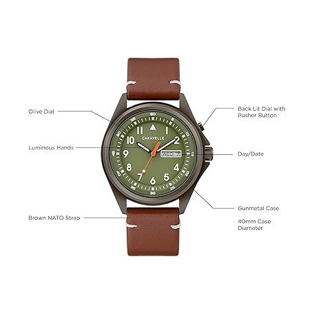 Thông tin sản phẩm Caravelle by Bulova Men's Traditional 3-Hand Day and Date Quartz Watch, Light Up, Stainless Steel, 40mm
