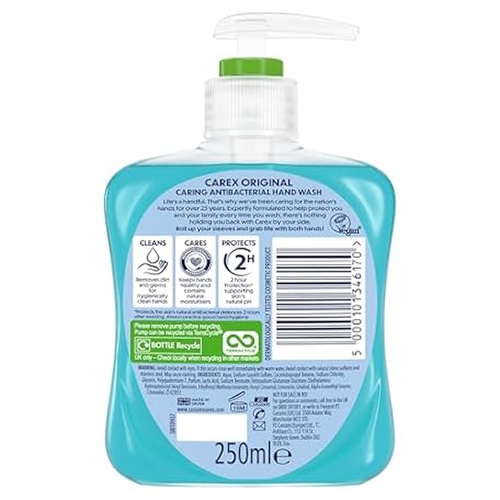 Thông tin sản phẩm Carex Original Antibacterial Hand Wash, Clean & Protect Hands, Bulk Buy, Pack of 6 x 250 ml (Packaging may vary)