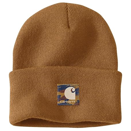 Carhartt Men's 106336 Knit Camo Patch Beanie, Carhartt Brown, One size