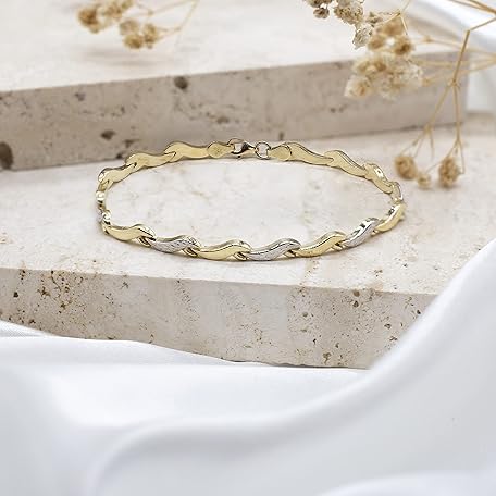 Sản phẩm CARISSIMA Women's 9 ct 2 Colour Gold Diamond Cut Wave Link Bracelet of Length 19 cm/7.5 inch đang được bán với giá ưu đãi là $467.9806 tại nước Anh.