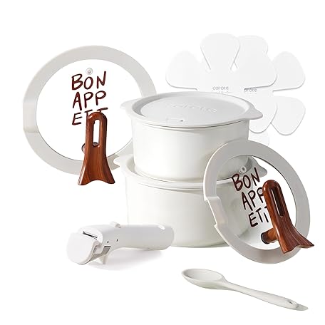 CAROTE Ceramic Pots and Pans Set Non Stick, Nonstick Kitchen Cookware Sets with Lid, 11 Piece Detachable Handle Sauce Pan Set, Non Toxic Cooking Pot, Oven Safe, Induction Ready, Cream White