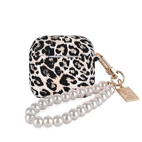 Case for AirPod 4th Generation 2024 with Pearl Bracelet Keychain, Leopard Cute Design Soft Silicone Shockproof Protective Skin Cover for AirPods 4 for Women-Black