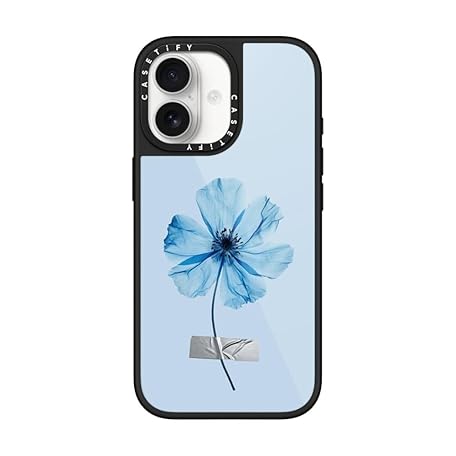 CASETiFY Glaze iPhone 17 Case [Scratch Resistant/Anti-yellowing/Compatible with Magsafe] - Blue Blossom with Tape - Blue Me Away - Clear