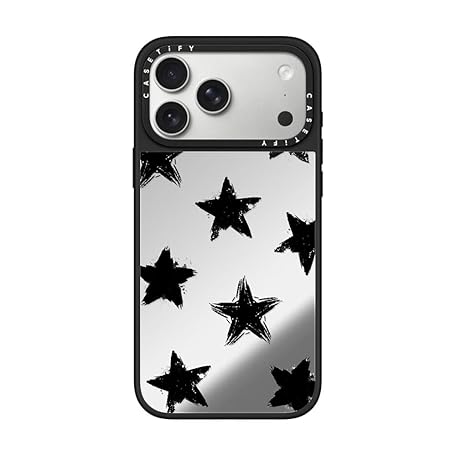 CASETiFY Mirror iPhone 17 Pro Max Case [Reflective/Slim Fit/Compatible with Magsafe] - Star Marks - Silver on Black