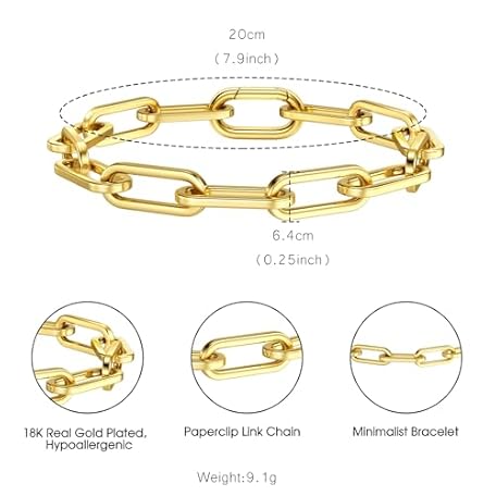 Sản phẩm CASSIECA Gold Bracelet for Women 18 k Gold Plated Bracelets Fashion Adjustable Chunky Cuban Paperclip Link Chain Bracelets Gold Jewellery Dainty Layering Bracelets for Women Ladies Gift đang được bán với giá ưu đãi là $14.6496 tại nước Anh.