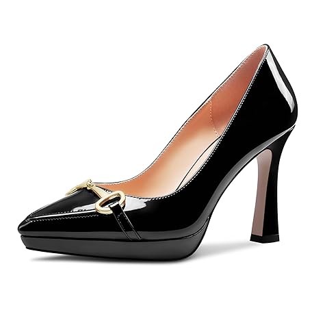 Castamere Womens High Platform Heel Pointed Toe Slip-on Metal Chain Pumps Court Shoe Wedding Office Casual 10 CM Heels Black 6 UK