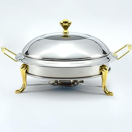 Catering Buffet Heated Hot Pot Set - Stainless Steel Buffet Warmer, Buffet Heating Container and Crock Pot, Restaurant Food Alcohol Heating Equipment for Catering Buffet Warming (Size:22cm,Color:Gold)