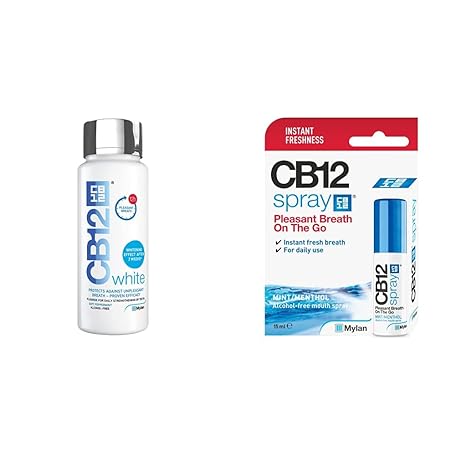 Sản phẩm CB12 White Mouthwash, Whiter Teeth After 2 Weeks, Pleasant Breath for 12 Hours, 250 ml & CB 12 Spray – Instant Freshness on The Go, Reduces The Root Cause of Bad Breath, with Zinc Acetate đang được bán với giá ưu đãi là $13.2435 tại nước Anh.