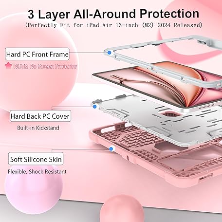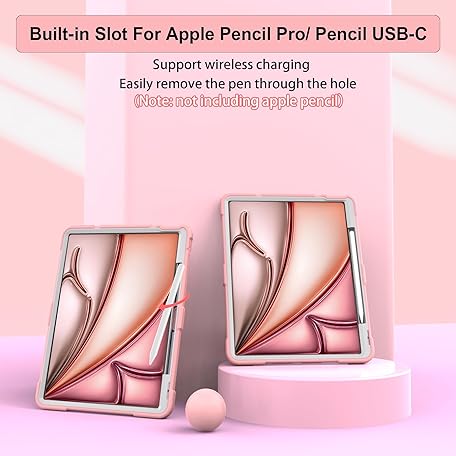 Thông tin sản phẩm CCMAO for iPad Air 13 Inch Case (2025/2024), iPad Air 13 M3/M2 Case with Pencil Holder and Stand, Fully Supports Pencil Pro/USB-C, Heavy Duty Shockproof Protective Cover, Rose Gold+Gray