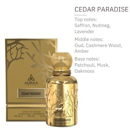 Sản phẩm Cedar Paradise 100ml Extrait de Parfum by Auraa Desire | Strong Spicy Fresh Luxury Unisex Fragrance with Oud Saffron & Amber Scent đang được bán với giá ưu đãi là $43.6327 tại nước Anh.