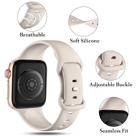 Sản phẩm CeMiKa Compatible with Apple Watch Strap 41mm 40mm 38mm 42mm, Silicone Sport Band Replacement Straps Compatible with Apple Watch Series 11 10 9 8 7 6 5 4 3 2 1 SE SE3, Women Men, Starlight đang được bán với giá ưu đãi là $7.8589 tại nước Anh.