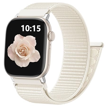 CeMiKa Nylon Loop Strap Compatible with Apple Watch Strap 40mm 42mm 41mm 38mm Men Women - Nylon Sport Soft Breathable Band for iWatch SE Series 11 10 9 8 7 6 5 4 3 SE3, Starlight