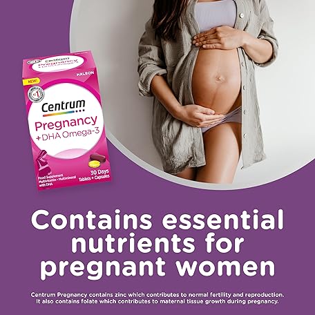 Thông tin sản phẩm Centrum Pregnancy Vitamins for Women, Pregnancy Vitamins with DHA, Omega 3 and Folic Acid, 60 Count, 30 Day Supply