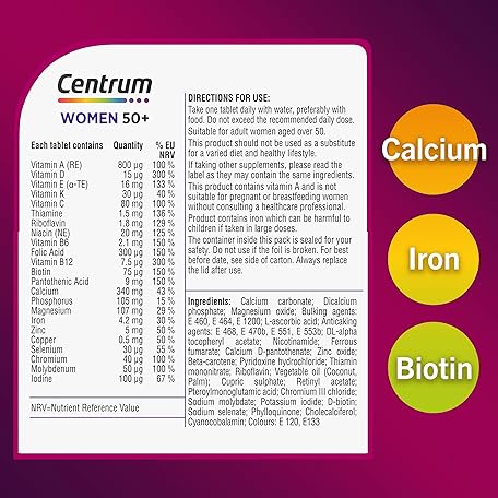 Thông tin sản phẩm Centrum Women 50+ Tablets Multivitamin & Mineral Supplements, 23 essential nutrients including vitamin D, C, and Iron, 30 ct