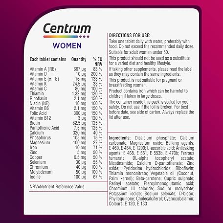 Thông tin sản phẩm Centrum Women Multivitamin Tablets for Women, Vitamins with 23 Essential Nutrients, Including Vitamin C, D and Iron, 30 ct (Packaging and Tablet Colour May Vary Slightly) (Pack of 3)