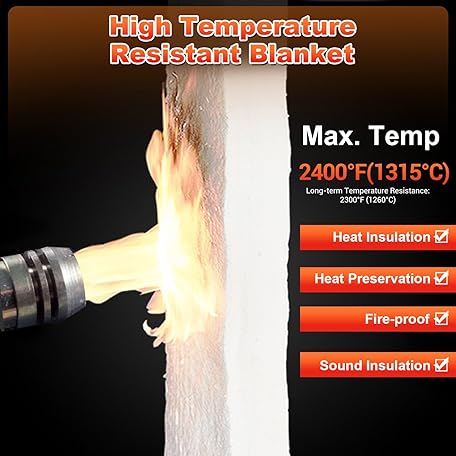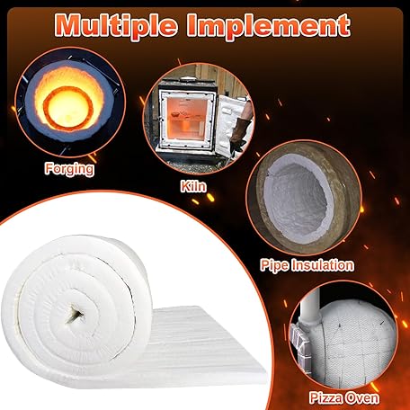 Thông tin sản phẩm Ceramic Fiber Blanket, Fireproof Insulation Baffle, Rated to 1315°C, Size 60 x 30 cm, 25mm Thick, High-Temperature Resistance for Pizza Oven Stoves, Kilns, Forges, Pipes Insulation