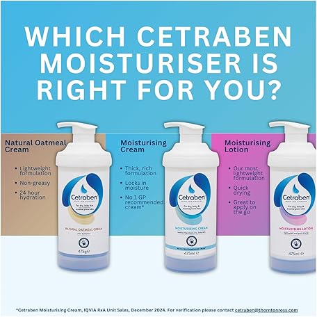Thông tin sản phẩm Cetraben Moisturising Cream, For Dry, Itchy, Sensitive & Eczema-Prone Skin, Soothe, Moisturise, Hydrate, & Protect, Dermatological Moisturiser,Daily Use on the Body, Fragrance Free, 1 x 475ml