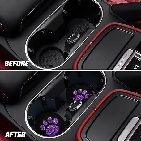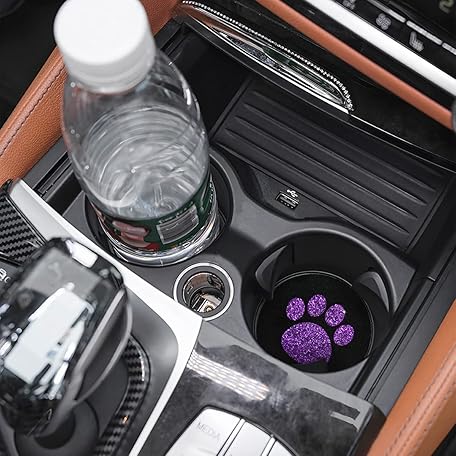 Thông tin sản phẩm CGEAMDY 2 Pack Car Cup Holder Coasters, 7 CM Bling Glitter Rhinestone Paw Print Cup Coaster, Rubber Non-Slip Insert Auto Drink Mat, Universal Car Interior Accessories for SUV, Truck, RV (Purple)