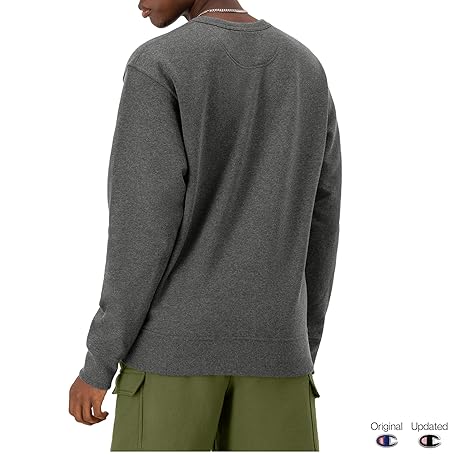 Thông tin sản phẩm Champion Men's Crewneck, Powerblend Fleece, Hoodie Sweatshirt Logo (Reg. Or Big & Tall), Granite Heather Small Script, L