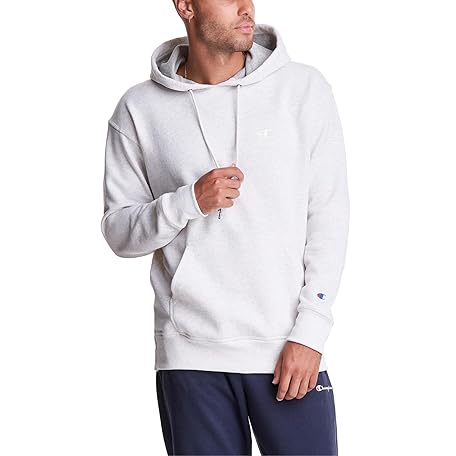 Champion Men's Powerblend Fleece Hoodie, C Logo, Oatmeal Heather, Medium