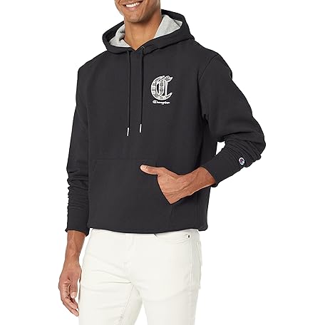 Champion Men's Powerblend Fleece Pullover Hoodie, Seasonal (Retired Colors), Black Faux Plaid, Medium, Black Faux Plaid Champion, M