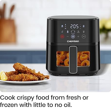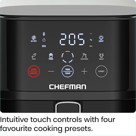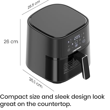 Thông tin sản phẩm Chefman Air Fryer – 3.75L Compact Airfryer for Quick, Easy Meals, Features Hi-Fry Technology for Extra Crisp, Easy-View Window, Touch Controls with 4 Presets, Nonstick & Dishwasher Safe Basket - Black