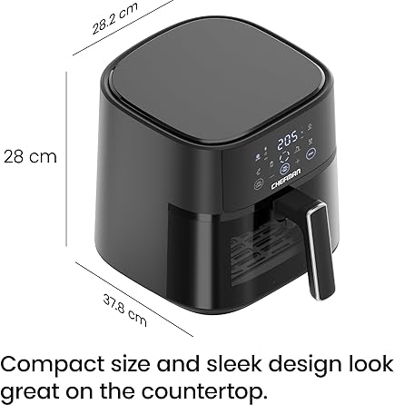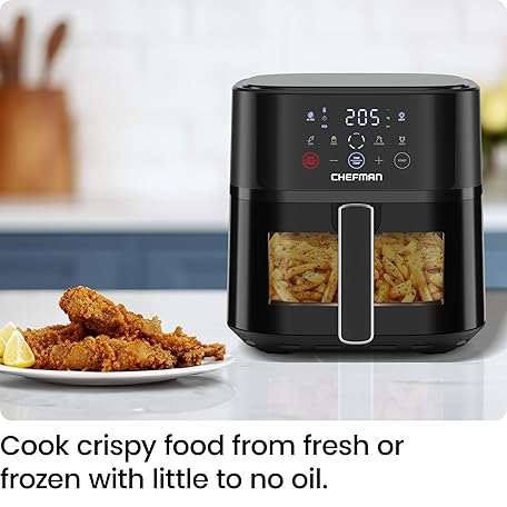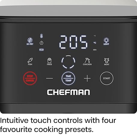 Thông tin sản phẩm Chefman Air Fryer – 5.7L Compact Airfryer for Quick, Easy Meals, Features Hi-Fry Technology for Extra Crisp, Easy-View Window, Touch Controls with 4 Presets, Nonstick & Dishwasher Safe Basket - Black