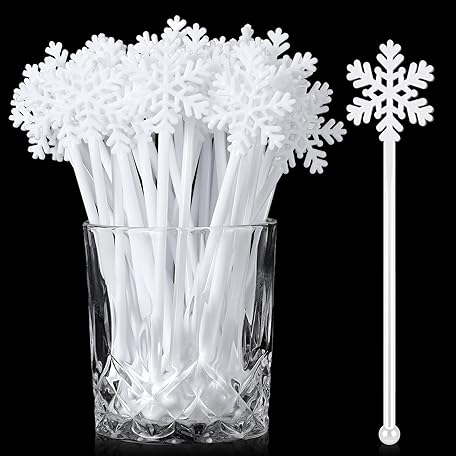Chengu 100 Pcs Christmas Drink Stirrers Xmas Stir Sticks Bulk Holiday Coffee Stirrers Plastic Swizzle Stick Hot Cocoa Bar Supplies Chocolate Decoration Reusable Cocktail Mixer(White Snowflake)