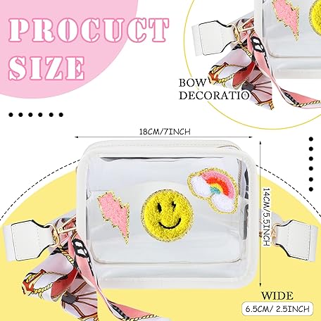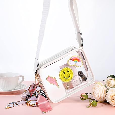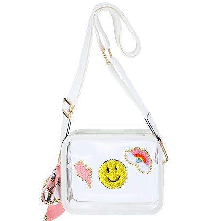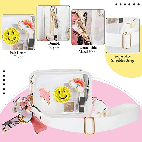 Sản phẩm Chenille Patch Preppy PVC Clear Crossbody Bag Stadium Approved Small Transparent Preppy Makeup Bag Waterproof Clear Purse Square Zipper Clear Pouch for Women Girls Beach Travel (White) đang được bán với giá ưu đãi là $23.217 tại nước Anh.