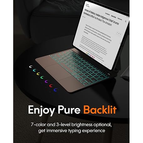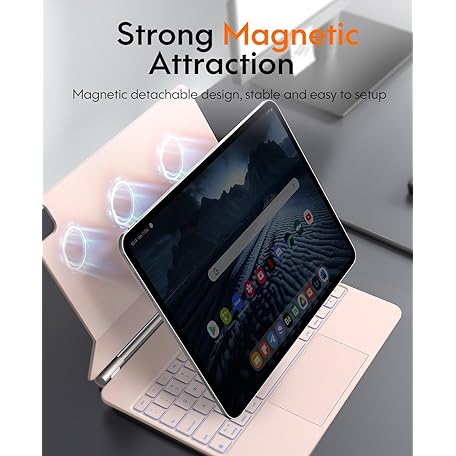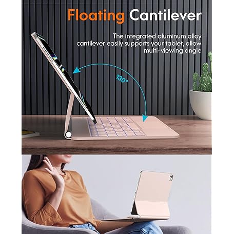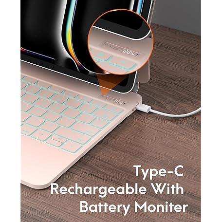 Thông tin sản phẩm CHESONA for iPad Pro 13 inch Case 2024 with Keyboard, Easy-Set Floating Cantilever Stand, Smart Trackpad, 7 Color Backlit with Battery Digital Display, Keyboard Case for iPad Pro 13 (M4), Pink