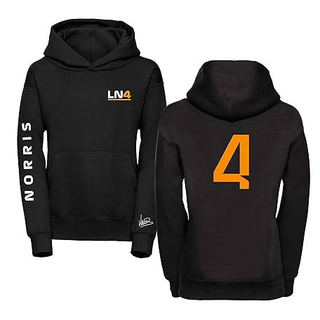Children's Studio 24 Signature Collection Lando Norris Hoodie Norris Signature Printed F1 Hooded Sweater 2022 McLaren No. 4 Free UK Shipping (7-8 Years, Black)