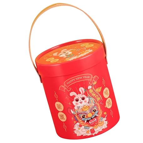 Chinese New Year Metal Round Biscuit Bucket Lid, Candy and Nut Storage Container, Festive Box for Snack Organization and Holiday Packaging