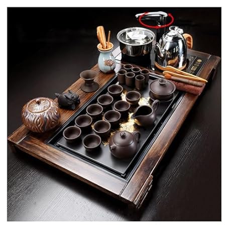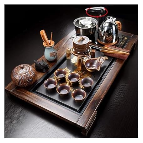 Chinese Tea Ceremony Table Tea Set,Tea Serving Tray Kung Fu Tea Set With Wood Solid Wood Tea Tray Drainage Water Storage,Chinese Ceramic Kungfu Tea Set,with Automatic Water Heater(Size:Style-2)