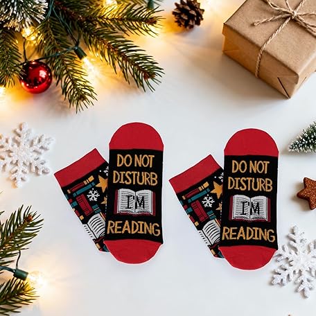 Chrismas Book Socks,Stocking Stuffers for Teen Girls Boys,Bookish Gifts for Him Her,Funny Socks for Reading Women Men,Book Lover Gifts,Birthday Christmas Stocking Stuffers,Reading Accessories