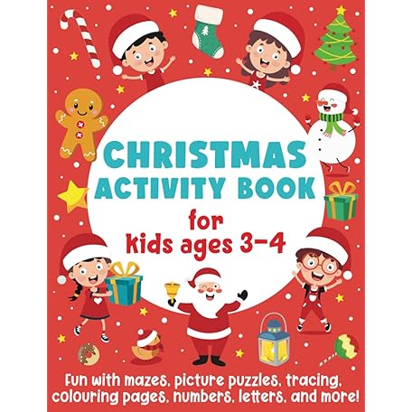 Christmas Activity Book for Kids Ages 3-4: Fun with Mazes, Picture Puzzles, Tracing, Colouring Pages, Numbers, Letters, and More!: Fun Activities for Boys and Girls)