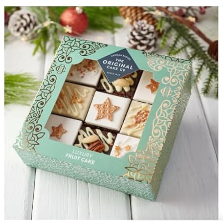 Sản phẩm Christmas Cake Gift Box - 9 Piece Festive Fruit Cake - Rich In Sultanas, Cherries and Citrus Peels - Suitable For Vegetarians - 650 g đang được bán với giá ưu đãi là $14.6169 tại nước Anh.