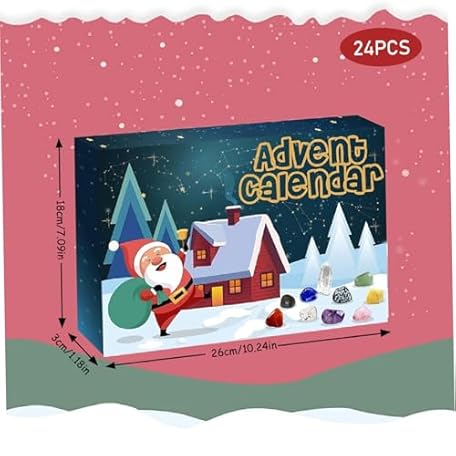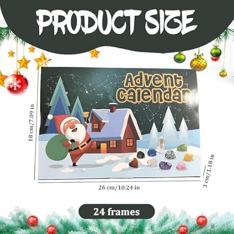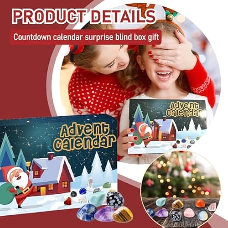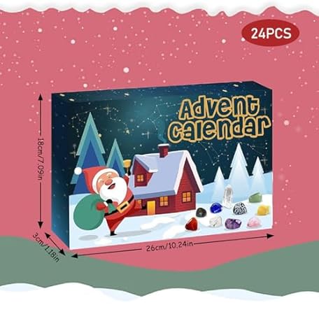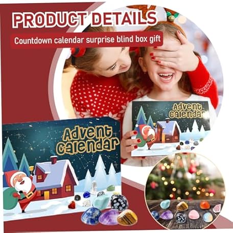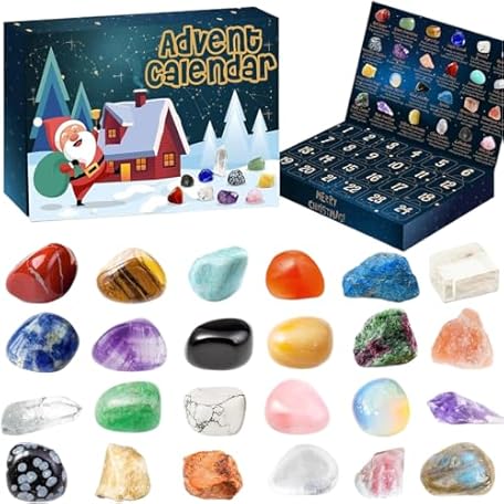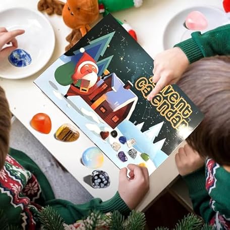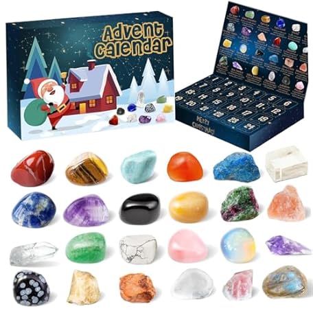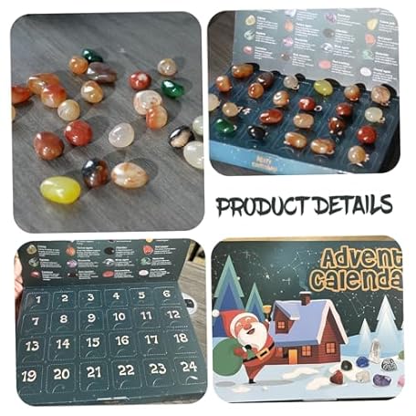 Christmas Decorations, Christmas Advent Calendar, 24 Days Advent Calendar 24 Grids Crystal Stone Minerals Fossils with Introduction Countdown Enthusiasts Rock Collection