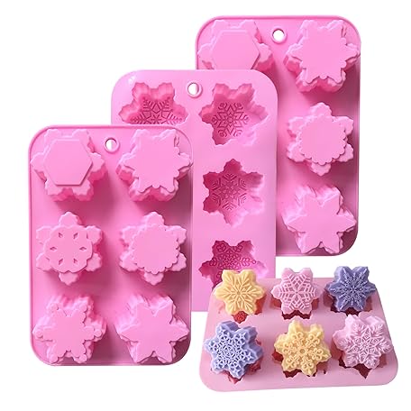 Christmas Snowflake Silicone Molds Set 3 Pcs 6 Cavity Different Snowflake Shaped Silicone Molds Non-Stick Food Grade Molds for Christmas Chocolate Cake Candy Jelly Soap Ice Candle Mold