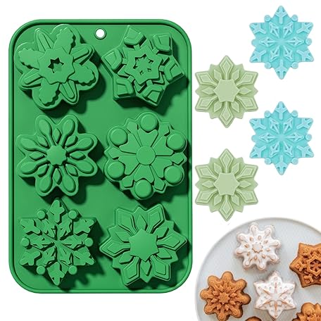 Christmas Snowflake Soap Silicone Mold, 6 Cavity Deep Snowflake Handmade Chocolate Ice Cube Mould Cake Pans Baking Trays for Xmas Home Cookie Desserts Making Tool Supplies (1 Pc) (White)
